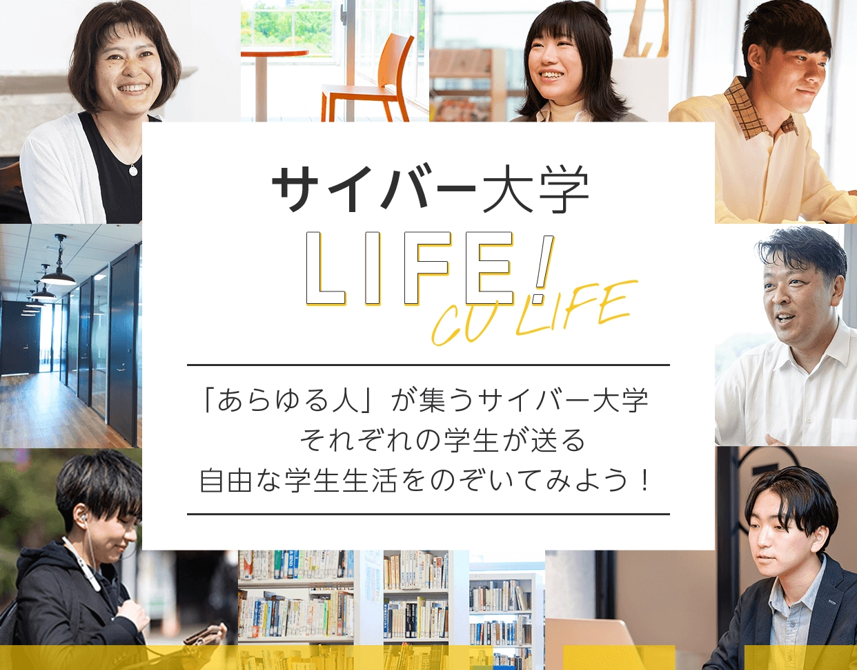 学び方や卒業後の進路は人それぞれ。サイバー大学では、高校を卒業したばかりの方、会社員の方、会社を経営する方やセカンドライフを謳歌している方等、さまざまなバックボーンを持つ学生が在籍しています。